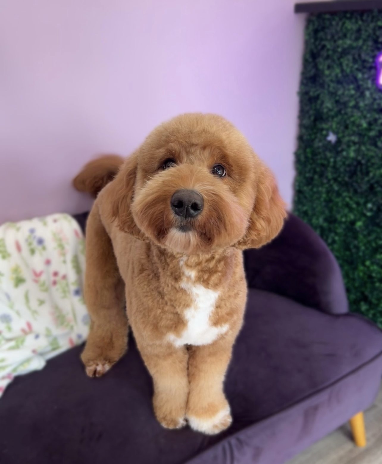 Cage-free breaks in pet suites or with stylist